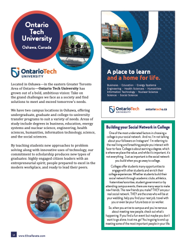 has grown out of of of a a a a a a a a a a a a a a a a a a a a a a a a bold ambitious vision: Take on on on on the the grand challenges we face as as as a a a a a a a a a a a a a a a a a a a a a a a a a a a a a society and and and and find solutions to to to to meet and and and and exceed tomorrow’s needs needs We have two campus locations in in in in in in in in Oshawa offering undergraduate graduate graduate and and and and and college-to-university transfer programs to to to to suit a a a a a a a a a a a a a a a a a a a a a a a a variety of of of needs needs Areas of of of study include degrees in in in in in in in in business education energy systems and and and nuclear science science science science engineering health sciences sciences humanities information technology technology science science science science and and the social sciences sciences By teaching students new new approaches to to to problem solving along with with innovative uses of of technology technology our commitment to to to to scholarship produces new new types of of graduates: highly engaged citizen leaders with with an an entrepreneurial spirit people prepared to to to to excel in in in in the the modern workplace and ready to to to lead lead their peers 14 www EDcellerate com