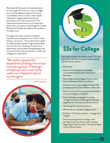 • Start on-line classes from overseas universities and work part-time while in in Bermuda • Start at at Bermuda College full time live at at home and and save on Room and and Board