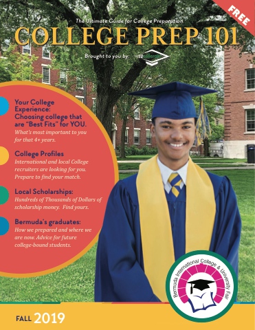 The Ultimate Guide for College Preparation Brought to you by: Your College Experience: Choosing college that are “Best Fits” for YOU. What’s most important to you for that 4+ years. College Profiles International and local College recruiters are looking for you. Prepare to find your match. Local Scholarships: Hundreds of Thousands of Dollars of scholarship money. Find yours. Bermuda’s graduates: How we prepared and where we are now. Advice for future college-bound students. FALL 2019 FREE