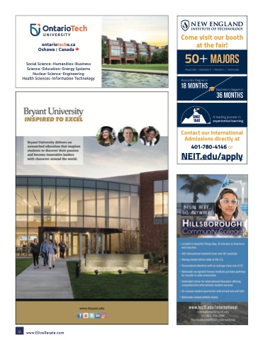 ontariotechu.ca Oshawa | Canada Social Science • Humanities • Business Science • Education • Energy Systems Nuclear Science • Engineering Health Sciences • Information Technology Come visit our booth at the fair! Contact our International Admissions directly at 401-780-4146 or NEIT.edu/apply 16 www.EDcellerate.com